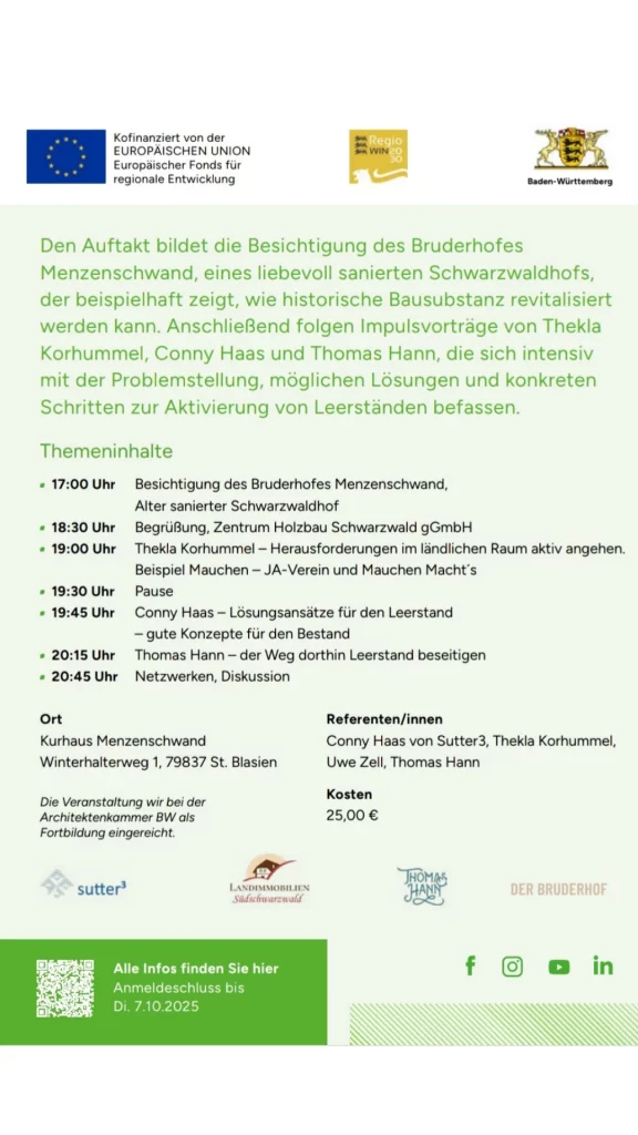 Der Bürgermeister von St. Märgen – Herr Manfred Kreutz hatte in Zusammenarbeitsgemeinschaft mit Cornelia Haas (sutter³), Uli Nocke (designconcepts) und Stefan Baum (Baum Architektur & Stadtplanung) 2021 gemeinsam einen Antrag im Rahmen des „Entwicklungsprogramms Ländlicher Raum“ (ELR) des Landes Baden-Württemberg eingereicht. Ziel dieses Programms ist es, die Lebensqualität im ländlichen Raum zu erhalten und zu steigern.