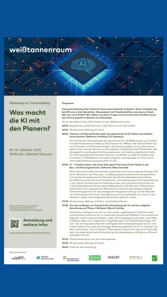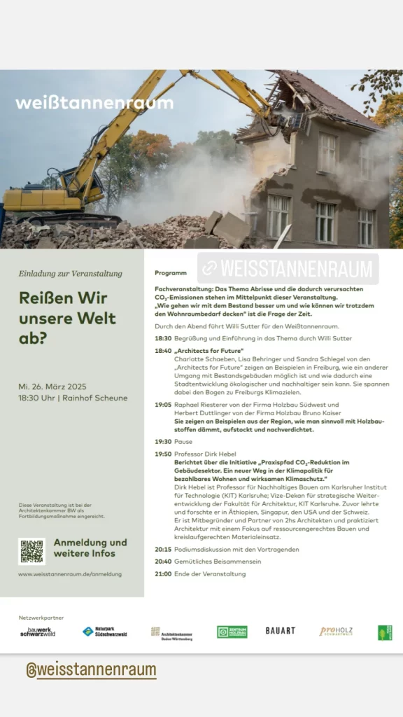 Wir laden euch herzlich ein, gemeinsam mit uns über die Zukunft des (Um)Bauens und den Wert des Bestands zu diskutieren. Weitere Informationen zu einzelnen Veranstaltungen folgen.