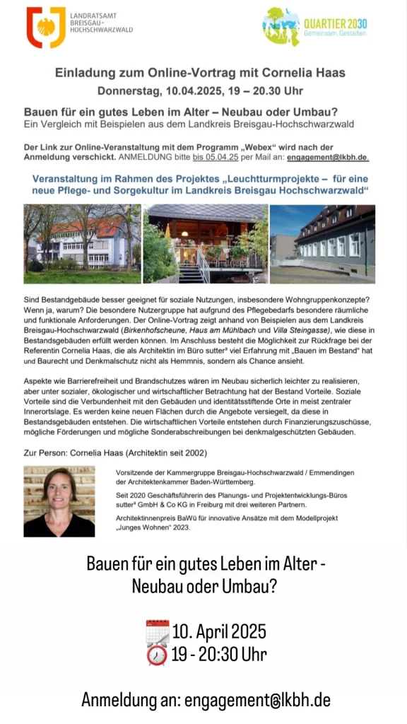 Bei der Umsetzung setzen wir dabei auf Bestandserhalt und berücksichtigen den demografischen Wandel. Bürgermeister Thomas Gedemer sieht das Projekt als Modell für den Umgang mit kirchlichen Immobilien. Die Bauarbeiten starten voraussichtlich Ende 2025/Anfang 2026. Weitere Infos finden sich bei der Badischen Zeitung.