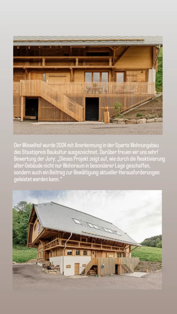 Der Wieselhof wurde mit Anerkennung in der Sparte Wohnungsbau des Staatspreis Baukultur ausgezeichnet. Darüber freuen wir uns sehr!